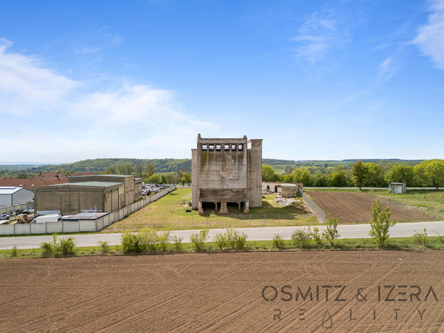 Pozemku dominuje velká 6-ti patrová budova sušičky s variabilním využitím a celkovou výškou 18 m který je v lokalitě dominantní dobře vidět z dálnice - ideální reklamní plocha.