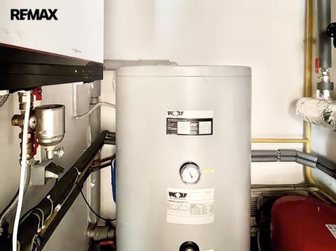 V objektu - obecní vodovod, napojen na kanalizaci, elektřina 220 W a 380 W, ohřev vody a vytápění plyn.