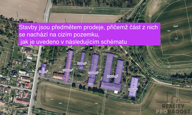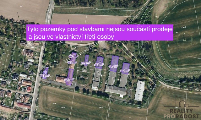 Prodej zemědělského areálu – Mělice u Přelouče (okr. Pardubice) Celková plocha pozemků: 15 394 m² Zastavěná plocha hal: cca 7 117 m² Nabízím k prodeji rozsáhlý zemědělský areál v obci Mělice, který tvoří soubor několika hal a skladovacích objektů vhodných k podnikání, pronájmu či jako investiční příležitost. Součást prodeje Pozemky o výměře 15 394 m² (viz fialově vyznačené části na leteckých snímcích) Stavby o celkové ploše cca 7 117 m², z toho: 289 m² 377 m² 945 m² 1 004 m² 1 326 m² 3 176 m² … a další menší objekty (všechny stavby jsou součástí prodeje) Důležité informace Část staveb se nachází na cizích pozemcích, avšak toto umístění je legalizováno platnými nájemními smlouvami, které lze převzít. Příjezd na areál není řešen formou přímého vlastnictví k příjezdové komunikaci. Přístup je však zajištěn a právně řešitelný. Část pozemků pod samotnými stavbami nejsou součástí prodeje a jsou ve vlastnictví třetích osob – viz samostatné grafické schéma. Vhodné využití Nemovitost je ideální pro investory, kteří hledají: možnost pronájmu hal menším firmám, živnostníkům, skladům nebo dílnám prostor pro skladové nebo výrobní účely Dopravní dostupnost Obec Mělice leží 15 km od nájezdu na dálnici D11 (Chýšť ) Přelouč: 6 km Pardubice: 20 km Hradec Králové: 30 km Výborné napojení na železniční trať a průmyslové zóny v okolí. Pro více informací či domluvení prohlídky nás neváhejte kontaktovat. Realitní makléř Martin Socha