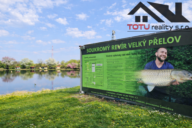Nabízíme k prodeji soubor pozemků se soukromým rybníkem VELKÝ PŘELOV v obci Černožice nad Labem, okres Hradec Králové. Obec se nachází na hlavním tahu mezi Hradcem Králové a Jaroměří s dálničním nájezdem D 11 ve vzdálenosti 2 km. Na oploceném pozemku s celkovou plochou velkorysých 44.772 m2 se nachází 18 chatek se zastřešenou verandou a čtyřmi lůžky, včetně napojení na elektro a internet. Dále pak v revíru naleznete vnitřní i venkovní posezení s výčepem, udírnu, 20 m vrtanou studnu, sklady, sociální zázemí se sprchovým koutem a toaletou. K pozemkům vede bezproblémová asfaltová obecní příjezdová cesta. Parkování na vlastním pozemku o ploše 758 m2. Součástí prodeje je kompletní veškeré vybavení s několika lodičkami. Celý rybník je pod zabezpečovacím kamerovým systémem. Původně slepé rameno řeky Labe, kterým v minulosti rybník byl dokládají dobové fotografie v obecní kronice. Revír je velmi navštěvovaný s hojnou populací kaprovitých ryb jako je kapr, amur, karas, lín a velkým množstvím jeseterů sibiřských, jadranských a transmontana. Samozřejmostí je hojnost dravých ryb jako je štika, candát, okoun nebo úhoř a spousta dalších druhů sladkovodních ryb. Celkově se zde návštěvníkům nabízí překrásná přírodní scenérie spojená s nevšedním zážitkem z kapitálního úlovku. Nemovitost ocení jak investoři tak i milovníci rybaření či rybářské spolky. Doporučujeme prohlídku. Pro podrobnější informace volejte makléře. Těšíme se a Petrův zdar.