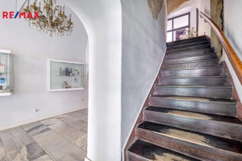 Pokračujeme-li chodbou, míjíme schodiště do patra budovy a dále se dostáváme ke vstupu do zajímavé klenuté provozovny o výměře 36 m2, která má výlohu na příjemný dvorek domu.