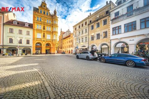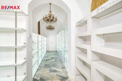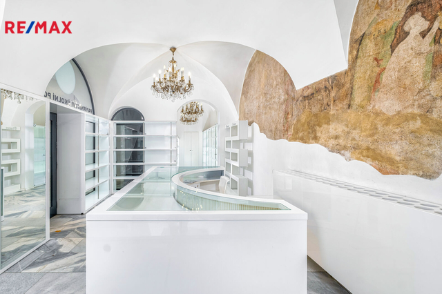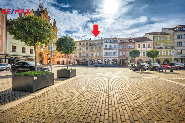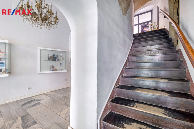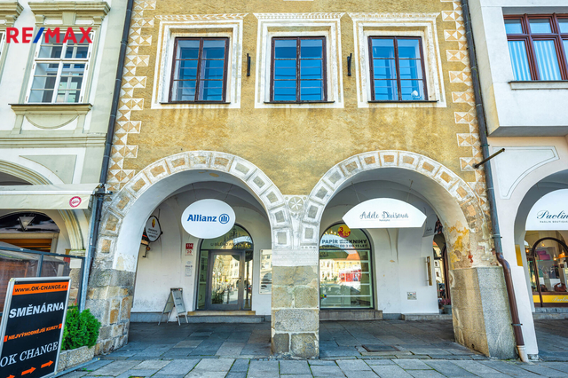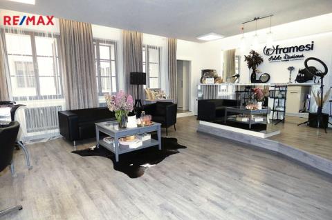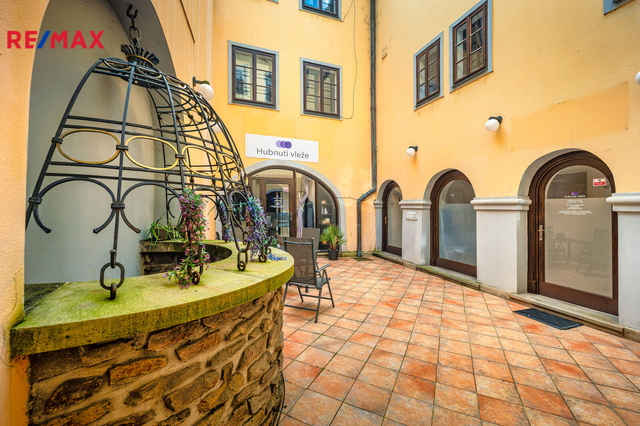 V prvním patře je kadeřnický salon s vlastním soc. zařízením o výměře 54 m2 a další prostor - 96 m2, kanceláře se soc. zařízením s okny na náměstí.