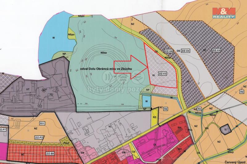 Nabízíme ke koupi stavební pozemek o výměře 29 452 m² v obci Zbůch, jen 10 minut od Plzně. Pozemek je dle územního plánu určen pro lehkou výrobu (VL) – vhodný pro montážní provozy, logistiku, sklady či technické služby. Lokalita má vynikající dostupnost na dálnici D5 (směr Praha i Rozvadov) a nachází se mimo obytnou zástavbu, což minimalizuje konflikty s okolím. Povolená je výstavba administrativy, parkovišť i manipulačních ploch. Koeficient zastavění je až 60 %, max. výška 2 NP, min. 20–30 % plochy musí tvořit zeleň. Nepřípustný je těžký průmysl, chemie a sklady nebezpečných látek. Ideální příležitost pro firmy hledající dostupný pozemek s velkým potenciálem v západočeském průmyslovém regionu.