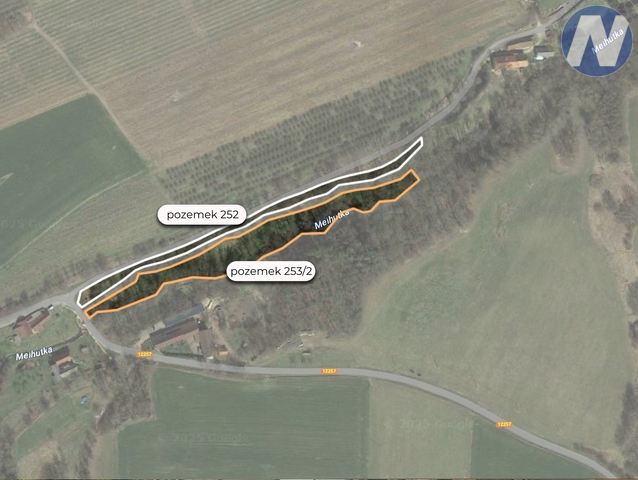 Pozemky jsou od sebe odděleny malým potokem, který přirozeně rozděluje prostor na dvě části – ideální například pro sad, pastvinu nebo klidovou zónu. Oba pozemky leží na kraji obce, mají přístup z obecní cesty, jsou zalesněné, takže představují ideální místo pro odpočinek, procházky, houbaření, nebo prostě únik z civilizace.