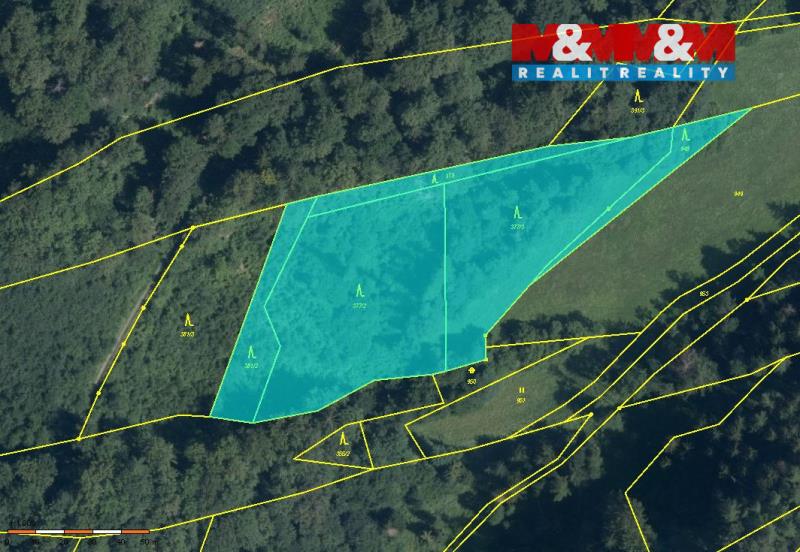 Prodej souboru lesních pozemků o celkové ploše 8828 m². Na pozemku se nachází převážně listnatý les se stářím okolo 20-ti let a částečně také 70 let starý smrkový porost. Zajímavá investice. Možnost vlastního palivového dřeva.
