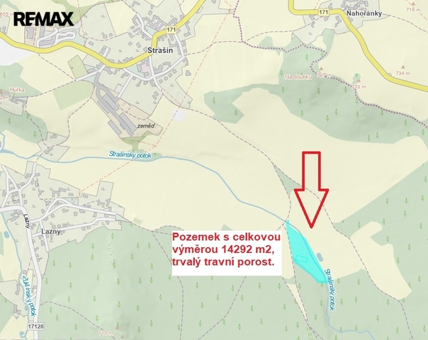 Exkluzivně nabízíme k prodeji pozemek - trvalý travní porost s celkovou výměrou 14292 m², který je složen ze 3 parcelních čísel v katastrálním území Strašín u Sušice. Tento pozemek, situovaný v klidné lokalitě v okresu Klatovy, se nachází v těsné blízkosti obce Strašín. Celková rozloha pozemku poskytuje dostatek prostoru pro realizaci různých projektů. Na pozemkem protýká malý potůček, který přispívá k přírodní atmosféře a je výhodou pro chov hospodářských zvířat. Pozemky jsou určený jako louky, což zaručuje jeho kvalitu a vhodnost pro zemědělské činnosti. V současnosti není přivedena elektřina, plyn ani voda. Tuto jedinečnou příležitost ocení zejména ti, kteří hledají investovat do rozvoje zemědělství. Vzhledem k velmi dobré poloze a výměře pozemku se jedná o zajímavou nabídku pro všechny, kteří mají zájem o přírodu a vlastní podnikání. V případě zájmu o prohlídku nás neváhejte kontaktovat.