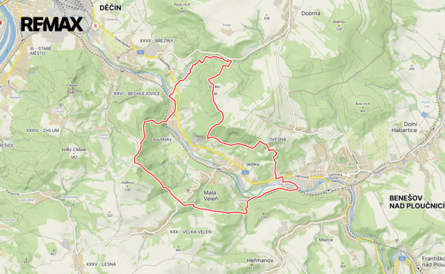 Nabízíme k prodeji pozemky v obci Malá Veleň u Děčína. Jedná se o soubor pozemků na LV 433 o celkové výměře 39 141m2, výměru tvoří převážně ostatní plocha/neplodná půda a lesní pozemky. Malá Veleň je neveliká obec v okrese Děčín v Ústeckém kraji. Leží asi 5 km jihovýchodně od Děčína. Pozemky se nachází v její územní části Malá Veleň-Soutěsky. Dle platného územní plánu jsou pozemky určeny jako plochy zemědělské s přípustným využitím pro pozemky staveb, zařízení a jiných opatření pro zemědělství, pozemky související dopravní infrastruktury (zemědělské účelové cesty), pozemky staveb a zařízení technické infrastruktury. Přístup a příjezd na pozemky je z hlavní komunikace. V případě zájmu volejte makléře nabídky. Prodávající si vyhrazuje právo vybrat kupujícího na základě jím zvolených kritérií.