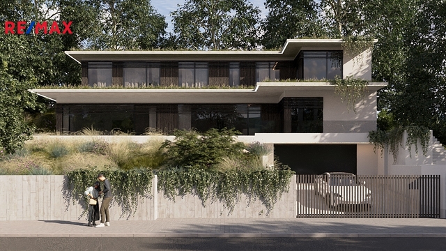 Nabízím k prodeji stavební pozemek o výměře 1 000 m² v jedné z nejžádanějších rezidenčních lokalit Prahy 4 – Hodkovičky, ulice Na Lysinách. Pozemek je prodáván s platným společným územním a stavebním povolením na výstavbu luxusní třípodlažní vily, což umožňuje okamžité zahájení realizace bez zdlouhavého povolovacího procesu. Pozemek má pravidelný obdélníkový tvar a díky svažitému terénu nabízí příjemné výhledy do okolní zeleně. Nachází se v klidné vilové zástavbě, která poskytuje dostatek soukromí a zároveň rychlou dostupnost do centra Prahy. Lokalita Hodkoviček je dlouhodobě vyhledávaná pro své spojení městského komfortu a přírody. Součástí nabídky je projekt moderní solitérní vily s plochou střechou, která je navržena jako komfortní rodinné bydlení s důrazem na prostor, světlo a soukromí. Vila má tři podlaží (1. podzemní a 2 nadzemní) a celkovou podlahovou plochu cca 303 m². Dispozičně nabízí tři prostorné ložnice, dvě koupelny, velkorysý obývací prostor s kuchyňským a jídelním koutem a přímým vstupem na rozlehlou terasu. Projekt počítá s garáží pro dva vozy, dalšími dvěma venkovními parkovacími stáními, dostatkem skladových prostor a výtahem, který zajišťuje komfortní propojení všech podlaží. Maximální výška stavby je stanovena na 6,7 metru od úrovně přízemí. K vile bude vybudován nový vjezd z ulice Na Lysinách, osazený pojezdovou bránou a vstupní brankou. Stavba je plně připravena na napojení ke všem inženýrským sítím – vodovodu, splaškové i dešťové kanalizaci a elektřině. Významným benefitem je schválená instalace podzemní retenční nádrže na dešťovou vodu o objemu 15 m³, která umožní efektivní hospodaření s vodou a údržbu zahrady. Součástí stavebního povolení je také souhlas s odstraněním stávající garáže na pozemku a schválený plán kácení dřevin včetně závazné náhradní výsadby. Projekt počítá s výsadbou pěti nových stromů a přibližně sta keřů, čímž vznikne zelená clona zajišťující příjemné mikroklima a soukromí od okolní zástavby. Pozemek je možné koupit ve dvou variantách. První možností je koupě samotného pozemku se stavebním povolením dle této nabídky. Druhou variantou je realizace domu na klíč ve spolupráci s developerem, a to dle schváleného projektu nebo po individuální úpravě podle požadavků budoucího majitele. Praha 4 – Hodkovičky patří mezi nejzelenější a nejklidnější rezidenční čtvrti v Praze. Lokalita nabízí výbornou dopravní dostupnost, kompletní občanskou vybavenost, blízkost lesoparků, cyklostezek a zároveň rychlé spojení do centra města. Jedná se o mimořádnou příležitost pro klienty, kteří hledají exkluzivní pozemek s okamžitou možností výstavby, nebo pro investory, kteří chtějí realizovat prémiový rezidenční projekt v jedné z nejlepších pražských lokalit Těším se na viděnou na prohlídce!