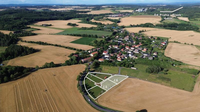 Prodej dvou stavebních pozemků na okraji obce Lazsko cca 8 km od Příbrami a cca 68 km od Prahy / cca 55 min autem /. Velice dobré spojení po dálnici D4 - sjezd o u obce Milín cca 3 km od stavebních pozemků. Prodává se pozemek na fotkách č. 5 o výměře 1052 m2 a pozemek č. 6 o výměře 1095 m2. K pozemku č. 5 je vydané stavební povolení na stavbu rodinného domu o zastavěné ploše 135 m2 a samostatně postavené garáže o zastavěné ploše 35 m2. Projekt je možné převzít nebo upravit podle zájemců. Plánovaná stavba přízemního rod. domu je 4 + kk, koupelna a WC, tech. místnost. Oba pozemky mají vlastní elektrickou přípojku a vlastní vrtanou studnu. Je plánovaná u každého pozemku malá domácí čistička odpadních vod. Součástí prodeje pozemků je podíl na přístupové komunikaci. Možnost okamžité stavby rod. domu. Obec Lazsko je napojená na místní autobusovou dopravu i pid - Příbram - Praha. Obchody, restaurace, školy, školky jsou v obci Milín a nebo v okresním městě Příbram / jezdí autobus /. Pozemky jsou na okraji obce ve velice pěkné krajině na dohled jsou Brdské lesy. Podrobné informace v RK. Při prohlídce nemovitosti je možné nahlédnout do stavebního projektu, na který je vydané stavební povolení.