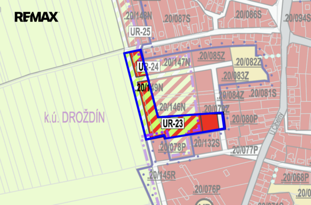 Nabízíme Vám výjimečnou investiční příležitost - soubor pozemků o celkové výměře cca 10 356 m2 a podíl 1/6 (cca 665m2 ) na sousedním pozemku o celkové výměře 3 994 m2, tj. celkem cca 11 021 m2 v lukrativní a velmi žádané lokalitě městské části Olomouci - Droždíně, kde územním plánem jsou aktuálně vedeny některé části tohoto souboru pozemků k využití jako plochy zastavitelné a plochy přestavby smíšené obytné se strukturou zástavby jako blokový typ a z části je pozemek veden k využití jako plocha zastavitelná s využitím plochy veřejných prostranství a dále plocha zemědělská s poznámkou uzemní rezerva označena UR-23. Přístup na pozemky je zajištěn z ulice Hany Kvapilové z veřejné komunikace ve vlastnictví města Olomouce. Pozemek se nachází v klidné lokalitě, městské části Olomouc - Droždín s velmi dobrou dopravní dostupností do centra města. V současnosti je na část tohoto pozemku uzavřena nájemní smlouva se zemědělským družstvem, kterou je možné dle podmínek z ní vyplývajících vypovědět. V pozemku parc. č. 221/43 je vedena kanalizace ve vlastnictví města Olomouce. V případě financování úvěrem neváhejte využít bezplatné konzultace s naší hypoteční poradkyní. Pro bližší informace neváhejte kontaktovat makléře této nabídky. Cena nemovitosti bude na žádost prodávajících sdělována vážným zájemcům na osobní schůzce. Prodávající si vyhrazuje právo vybrat kupujícího na základě jím zvolených kritérií.