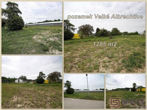 Nabízíme k prodeji stavební pozemek 1 285 m2 v obci Velké Albrechtice. Pozemek je slunný, rovinatý, částečně oplocený a nachází se v klidné části obce. Okolní zástavbu tvoří nové rodinné domy, elektřina je připravena na pozemku, možnost připojení na obecní vodovod a kanalizaci je hned před pozemkem. Výhodou je jeho poloha na okraji Velkých Albrechtic s výbornou dostupností města Bílovce, Penny Market je vzdálen 1 km, ZŠ v Bílovci 900 m, Gymnázium Mikuláše Koperníka v Bílovci 1 km. Pokud Vás tato nemovitost zaujala, rádi Vás přivítáme na nezávazné prohlídce.
