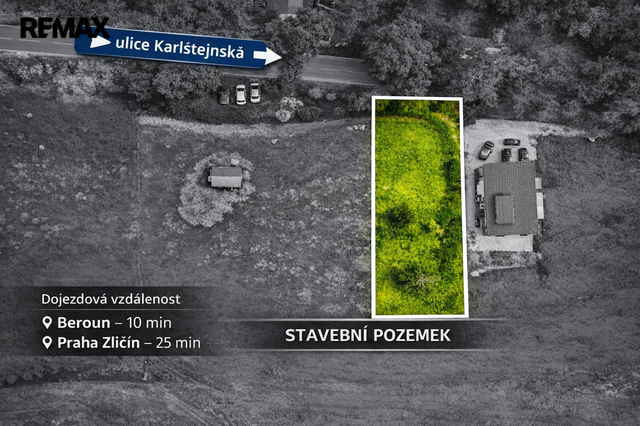 Exkluzivní nabídka rovinatého stavebního pozemku na okraji obce Beroun – Hostim, v atraktivní lokalitě CHKO Český kras, s výbornou dopravní dostupností do centra Berouna i na dálnici D5. Pro lepší představivost je inzerát doplněn vizualizací moderního venkovského domu s jedním nadzemním podlažím, obytným podkrovím a garáží pro dva vozy. Navrhovaná dispozice 4+1 o celkové výměře 180 m² odpovídá regulativům územního plánu. Na hranici pozemku je přivedena elektřina. Zásobování vodou je plánováno prostřednictvím domovní vrtané studny, pro kterou je zpracována projektová dokumentace. Odpadní vody lze řešit domovní jímkou nebo biologickou čističkou odpadních vod. Pro přístupovou cestu k pozemku je k dispozici návrh projektové dokumentace. Základní regulativy pro využití pozemku: Urbanistické řešení: - umístění nových staveb musí navazovat na stávající urbanistickou strukturu okolní zástavby - novostavby rodinných domů mají svým architektonickým řešením respektovat tradiční charakter venkovské zástavby v regionu - novostavby ani stavební úpravy nesmí narušit výškovou hladinu stávající zástavby Využití území: - případná doplňková zařízení a služby musí mít lokální charakter a sloužit výhradně obyvatelům lokality - jejich provoz musí respektovat hygienické limity (hluk, noční klid, světelné zatížení apod.) - parkování a garážování vozidel je nutné zajistit na vlastním pozemku - v lokalitě musí být vymezen prostor pro soustředění nádob na tříděný nebo směsný odpad - v případě instalace solárních panelů musí být tyto integrovány jako součást stavebního objektu Prostorové uspořádání: - individuální rodinné domy klasického venkovského typu v souladu s požadavky CHKO Český kras - maximálně jedno nadzemní podlaží s obytným podkrovím - minimální výměra nově oddělovaných pozemků: 1 500 m² - objemové a architektonické řešení staveb musí respektovat charakter okolní zástavby a krajinný ráz Koeficient zastavěnosti: - 0,65 z výměry pozemku do 800 m² - 0,85 z části pozemku nad 800 m² Hostim leží v samém srdci Chráněné krajinné oblasti Český kras a společně s Karlštejnem, Svatým Janem pod Skalou a historickým Tetínem patří mezi nejvyhledávanější turistické lokality regionu. Krajina Českého krasu je charakteristická vápencovým podložím, které tvoří převážnou část zdejší geologické stavby. Území je modelováno krasovými kaňony a roklemi, protkané množstvím jeskyní a na svých vrcholových partiích nese porosty dubových hájů s mimořádně bohatým bylinným patrem. V případě zájmu o více informací nebo sjednání osobní prohlídky mě neváhejte kontaktovat. Děkuji a těším se na setkání s Vámi. Prodávající si vyhrazuje právo vybrat kupujícího na základě jím zvolených kritérií.