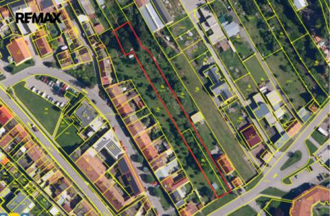 2 167 m², šíře parcely činí cca 12 až 14 metrů