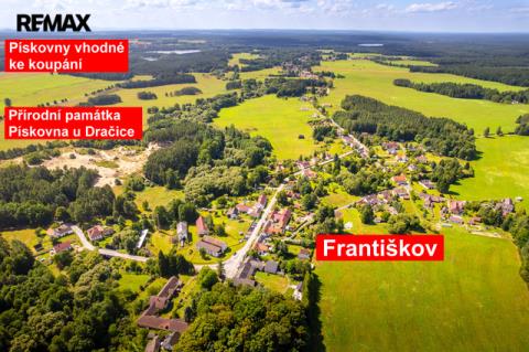 Nabízíme k prodeji výjimečný stavební pozemek o celkové ploše 2 947 m2 nacházejících se na okraji obce Františkov, poblíž Suchdola nad Lužnicí, v krásné lokalitě Třeboňska, známé svými malebnými lesy, rybníky a cyklostezkami. Územním plánem je část pozemku cca 1200 m2 určena pro bydlení v souladu s okolní zástavbou, povoleno je 1.NP + podkroví.