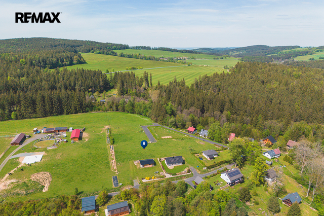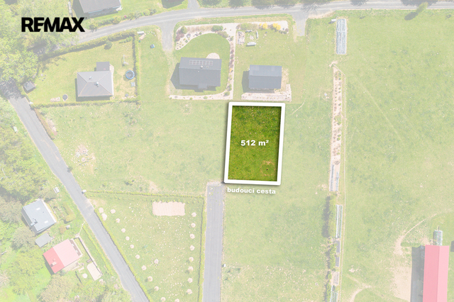 Pozemek o výměře 512 m2, k tomu id. ½ podíl příjezdového pozemku na severu o celkové výměře 105 m2 s šíří 6 m a v neposlední řadě vč. podílu na příjezdové cestě o celkové výměře 469 m2 s šíří 8 m, která je napojená na obecní příjezdovou cestu od hlavní silnice I/27.