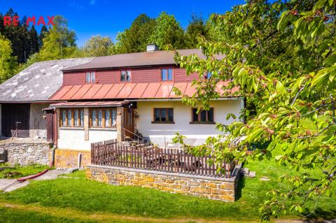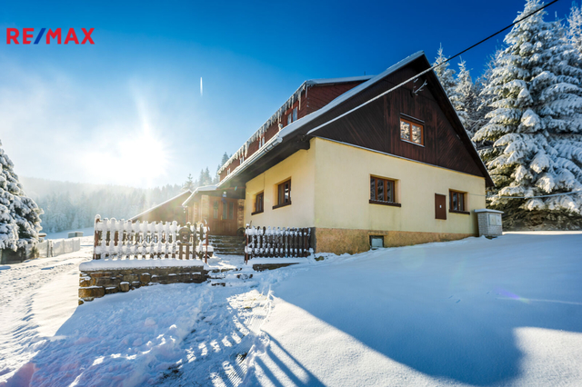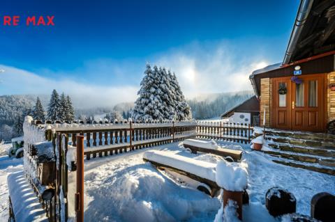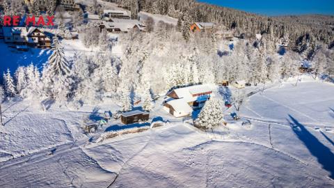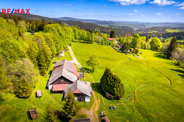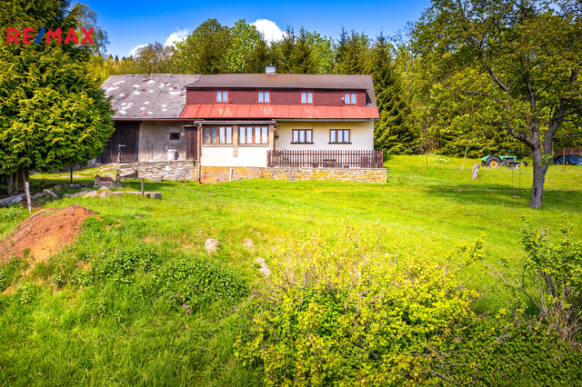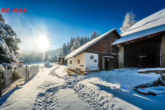 Máme pro vás na Šumavě zcela výjimečnou nemovitost! V centrální části v nadmořské výšce 1000 m n.m., v sousedství sjezdovek lyžařského areálu Zadov-Churáňov, s obrovským pozemkem 5,5 ha, s nádherným výhledem. Usedlost, která se po generace dědí z otce na syna. Za celou svoji 250letou historii měla usedlost v pozemkové knize či v katastru v kolonce příjmení vlastníka jen jediné jméno. Pojďte navázat na tento jedinečný příběh a splňte si svůj šumavský sen! Zadov je jedním ze tří nejnavštěvovanějších lyžařských areálů Šumavy. Kromě sjezdovek zde najdeme běžecký areál, začínají zde běžecké stopy směrem ke Zhůří, Horské Kvildě, Kvildě, Novým Hutím či Popelné, středisko nacházející se v centrální části pohoří je oblíbeno i cyklisty a pěšími turisty. Hned vedle skiareálu Kobyla najdeme místní část s příznačným názvem V ráji. Ačkoliv se nachází uprostřed Zadova, je před zraky turistů skryta. Velkou část lokality V ráji zabírá tradiční šumavská usedlost „U Tomíšků“, k níž patří téměř tříhektarová louka a dva hektary lesa v uceleném souboru. Místo je to naprosto výjimečné – od chalupy ležící pod lesem dojedete na lyžích až ke čtyřsedačkové lanovce, ze zápraží, terasy a dokonce z celého pozemku se můžete kochat nádhernými výhledy na sjezdovku i do krajiny a také díky jihovýchodní orientaci si užívat dostatku horského slunce. Prostě ráj… Hlavní objekt má zastavěnou plochu 335 m2. V přízemí obytné části najdeme obytnou kuchyni, čtyři pokoje, koupelnu, verandu se záchodem. Z chodby vedou schody do hezkého sklepa s klenutým stropem a také schodiště do podkroví, kde je jeden obrovský pokoj (přes 60 m2). Další obytnou plochu by bylo možné získat z prostorné půdy. Samozřejmě nic nebrání využít i stávající hospodářskou část a upravit ji k obývání. Hospodářskou část tvoří maštal (nyní ovčín) a dvě stodoly (z jedné je sklad paliva a nářadí). Vedle chalupy se nachází dvě vedlejší stavby, jedna slouží jako sklad techniky (zast. plocha 43 m2), druhá jako garáž (zast. plocha 29 m2). Usedlost je zásobována vodou z nové vrtané studny, dalším zdrojem vody je přítok z lesního pramene. Odpad je řešen septikem s přepadem. Možností, jak s nemovitostí nacházející se na nádherném místě v šumavské TOP lokalitě naložit, se nabízí více - jen je potřeba dodržet současnou zastavěnou plochu a podlažnost (1 NP + podkroví). Další rozšíření zastavěné plochy není v současné době možné. Neváhejte zavolat nebo napsat si o více informací. Tato nabídka je vskutku ojedinělá!
