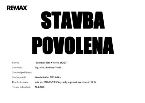 Chcete rovnou stavět bez čekání na úřady? Pak pro Vás máme ideální příležitost – nabízíme k prodeji stavební pozemek v obci Volšovy, v těsné blízkosti Sušice. Pozemek je situován na slunném, jižně orientovaném svahu na úpatí Svatoboru, což zajišťuje dostatek světla po celý den a zároveň krásné výhledy do okolní krajiny, dokonce i na hrad Kašperk. Výhodou je také dostupnost řeky a oblíbené lokality Páteček. Zásadní výhodou je, že na základě skvěle propracované architektonické studie a stavebního projektu, je již vydané platné stavební povolení – tedy máte za sebou celý zdlouhavý povolovací proces a můžete začít stavět prakticky ihned. Projekt rodinného domu je navržen s důrazem na účelnost, praktičnost a rozumné náklady na výstavbu. Hlavní výhody: • stavební pozemek • jižní svažitá orientace • platné stavební povolení pro rodinný dům • architektonicky kvalitní a promyšlený návrh domu • kompletní projektová dokumentace • přivedené inženýrské sítě – elektřina a vodovod • kanalizace řešena domovní čističkou odpadních vod • obytná část situována do podkroví s přímým vstupem na pozemek a do přilehlého lesa Navržený dům citlivě reaguje na terén – obytný prostor v podkroví přirozeně navazuje na svažitý pozemek, což umožňuje přímý vstup na zahradu a dále do lesa. Ideální řešení pro ty, kteří chtějí žít v kontaktu s přírodou. Tato nabídka je ideální pro zájemce, kteří chtějí bydlet v dosahu Sušice, ale zároveň hledají soukromí, klid a přírodu za domem – a přitom chtějí začít stavět prakticky ihned. V případě zájmu Vám rád poskytnu více informací nebo představím projekt osobně. Prodávající si vyhrazuje právo vybrat kupujícího na základě jím zvolených kritérií.
