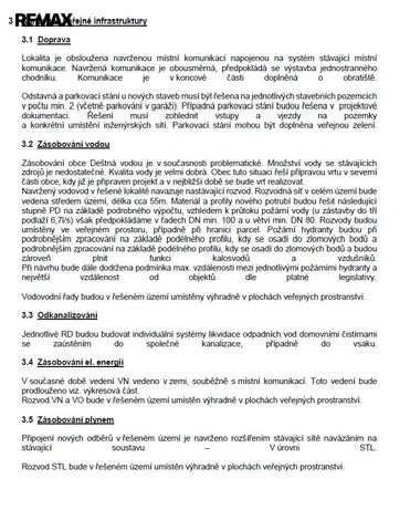 Charakter přípustné zástavby není nijak vymezený. Výška zástavby je možná jednopodlažní s využitelným podkrovím, případně s využitelným podsklepením. Výškový limit rodinných domů je 9 m. Navržený vodovod v řešené lokalitě navazuje na stávající rozvod.