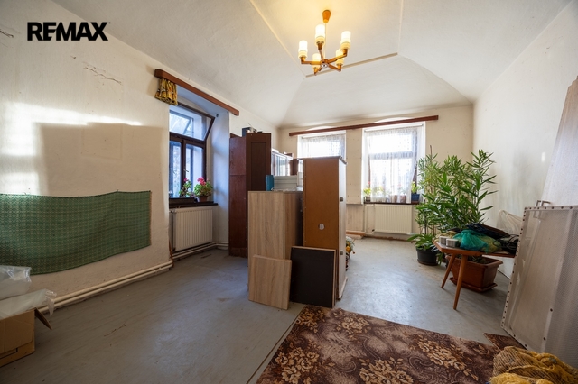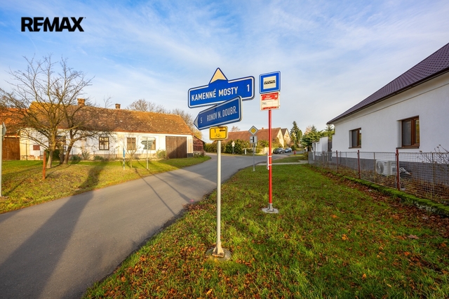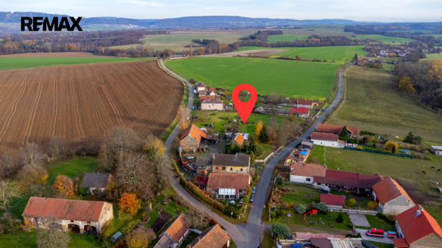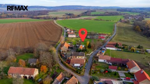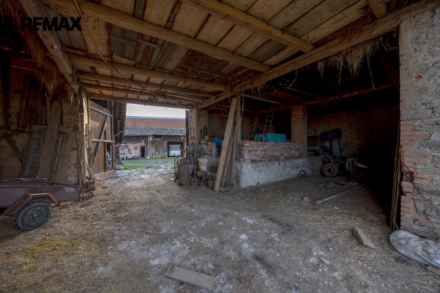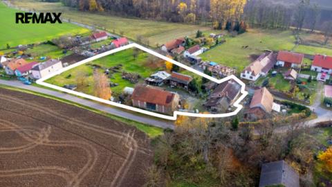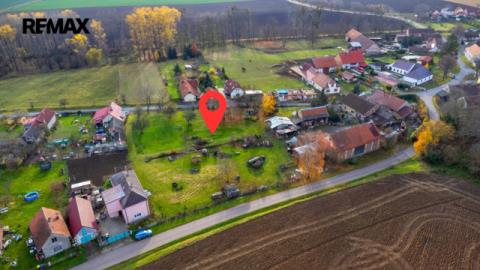 Na pozemku stojí podsklepený rodinný dům s číslem popisným o dispozici 4+1 určený k rekonstrukci a dále dvě stodoly. Dům je možné vytápět plynovým kotlem, krbovými kamny nebo kotlem na tuhá paliva. Je napojen na elektřinu a plyn. Na pozemku se též z každé strany nacházejí dvě vodovodní přípojky - jedna již osazena vodoměrem. Zdrojem vody pro dům je v současnosti jedna ze dvou studen - druhá studna se nachází na opačné straně pozemku a slouží zejména pro zalévání. V obci není zavedena kanalizace - odpad je řešen individuálně jímkou, případně se dá pomocí ČOV. Ohřev teplé vody zajišťuje elektrický bojler. Do hlavní stodoly je zavedena elektřina.