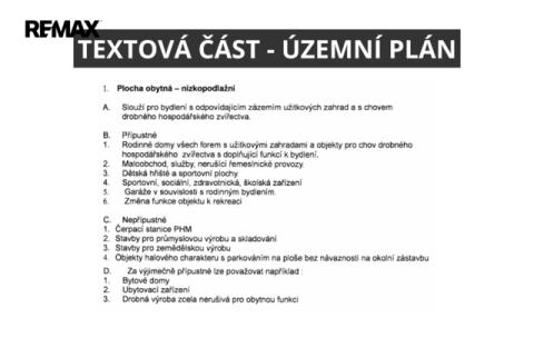 Kompletní informace o využitelnosti území naleznete v textové části územního plánu, který je součástí této inzerce.
