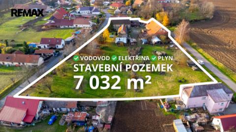 Pozemek je kompletně vedený jako stavební, má rozlohu 7 032 m² a nabízí skvělý investiční potenciál. V současnosti je využíván pro zemědělské účely, je však možné jej také rozdělit na několik samostatných stavebních parcel a ty následně prodat, nebo zhodnotit výstavbou rodinných domů, či jiným investičním záměrem.