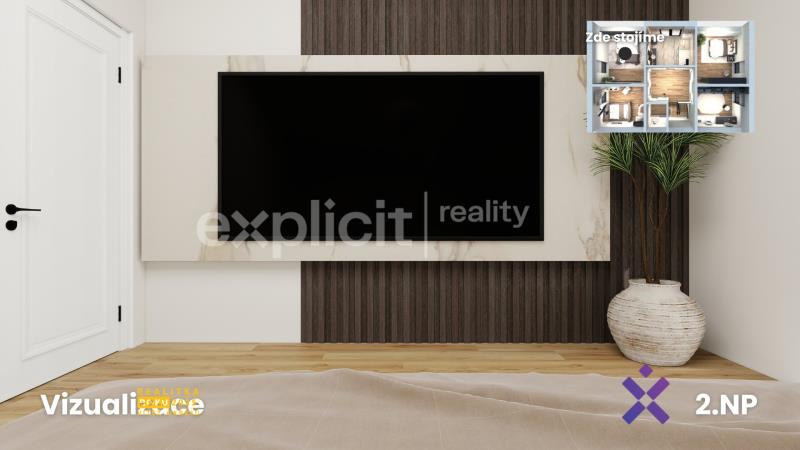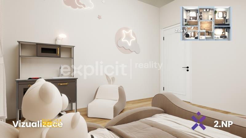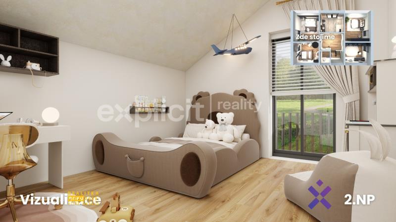 Vizualizace a vyobrazení nemovitosti a pozemku jsou pouze ilustrativní. Závazné údaje o hranicích pozemku jsou uvedeny v katastrální mapě.