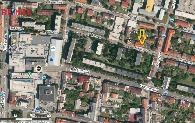 Nabízíme k prodeji nemovitosti, ležící v širším centru města, v Puklicově ulici (za obchodním domem IGY). Součástí pozemku ve tvaru „L“ o celkové výměře 740 m2 jsou dva samostatné rodinné domy. V přední části z Puklicovy ulice se nachází nepodsklepený objekt z r. 2001 o zastavěné ploše 127 m2. V přízemí budovy je nebytový prostor, kolaudovaný jako prodejna textilu se zázemím, které tvoří prádelna, kancelář a sociální zařízení. Samostatným vchodem je přístup do 2. NP, kde se nachází bytová jednotka 3+kk s podlahovou plochou 89 m2. Z bytu je dřevěnými schůdky dále přístup do podkrovní místnosti s plochou 27 m2. Vytápění domu je řešené ústředními rozvody, zdrojem tepla i ohřevu vody je plynový kotel. Dispoziční řešení objektu najdete na přiloženém orientačním půdorysu. V zadní části pozemku stojí původní stavba nepodsklepeného domu se zvláštním č.p., která je ve velmi špatném technickém stavu, určena k demolici. Na ní navazují dřevěné přístřešky (kolny). Na zadní část pozemku je zvláštním povolením umožněn přístup přes pozemek ve vlastnictví města Č.B. Nabízený soubor pozemků se nachází ve stabilizovaném zastavitelném území vnitřního města České Budějovice s převažující funkcí kolektivního bydlení (KOL-1). Dle platného regulačního plánu je na parcelách č. 2752/2 a 2758 možná výstavba bytových nebo polyfunkčních domů o maximálně 4 nadzemních podlažích. Parcely č. 2751/1 a 2760 jsou určeny pro doplňkovou zástavbu, parkování či technické zázemí hlavních objektů. Území je vhodné pro kompaktní městský rezidenční projekt s vysokým investičním potenciálem. Lokalita v Puklicově ulici nabízí kombinaci toho, co je v centru města čím dál vzácnější – výbornou dostupnost, stabilní územní regulaci a reálný rozvojový potenciál. V bezprostředním okolí se nachází obchodní centrum IGY, zastávky MHD, občanská vybavenost i pěší dostupnost historického jádra města.