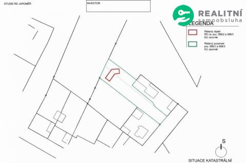 Exkluzivní stavební pozemek 866 m2 v klidné části Jaroměře Nabízíme ke koupi atraktivní stavební pozemek o výměře 866 m2 v Jaroměři, situovaný v klidné a velmi příjemné části města, v zástavbě rodinných domů. Lokalita poskytuje ideální podmínky pro pohodové rodinné bydlení s dostatkem soukromí, zeleně a příjemným okolím. Pozemek je vhodný pro výstavbu rodinného domu a představuje skvělou příležitost pro ty, kteří hledají místo pro vlastní bydlení v zavedené rezidenční zóně. Na pozemku je v současnosti nachází hrubá stavba garáže, kterou lze zachovat a dále využít podle potřeb nového majitele. Součástí nabídky je také architektonická studie rodinného domu, která může posloužit jako inspirace pro budoucí výstavbu nebo úpravu celého řešení pozemku. Hlavní přednosti: - výměra pozemku 866 m2, - klidná část Jaroměře, - rodinná zástavba, - vhodné pro výstavbu rodinného domu, - hrubá stavba garáže na pozemku, - možnost zachování stávajícího objektu, - architektonická studie součástí nabídky. - nízká cena Pozemek nabízí výborný potenciál pro realizaci komfortního rodinného bydlení v lokalitě, která spojuje klid, soukromí a dobrou dostupnost veškeré občanské vybavenosti.