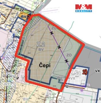 Nabízíme k prodeji atraktivní pozemky v klidné obci Čepí. Pozemky o výměře 15 065 m². Pozemky jsou připraveny územní studie Čepí - lokalita Z2, která je určena pro výstavbu rodinných domů v zóně - bydlení venkovské. Počítáno s rozparcelováním na 17 samostatných stavebních parcel a výměře kolem 800 m². Koeficient zastavění 40%. Inženýrské sítě zatím nejsou, napojení plánováno v rámci územní studie. Klidná lokalita s výbornou dostupností do Pardubic. V obci zastávka MHD č. linky 24. Pozemek představuje výjimečnou příležitost pro investory.
