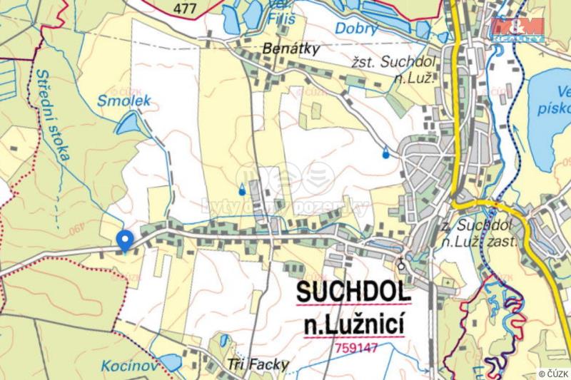 Dovolujeme si vám nabídnout prodej stavebního pozemku v obci Suchdol nad Lužnicí o celkové ploše 1226 m². Kanalizaci si každý řeší vlastní čističkou a elektrický proud s vodovodem je zaveden na hranici pozemku. Příjezd zajištěn přes pozemek, který je součástí prodeje. Velmi klidná lokalita. Do budoucna plánována autobusová zastávka. Pro více informací kontaktujte makléře.