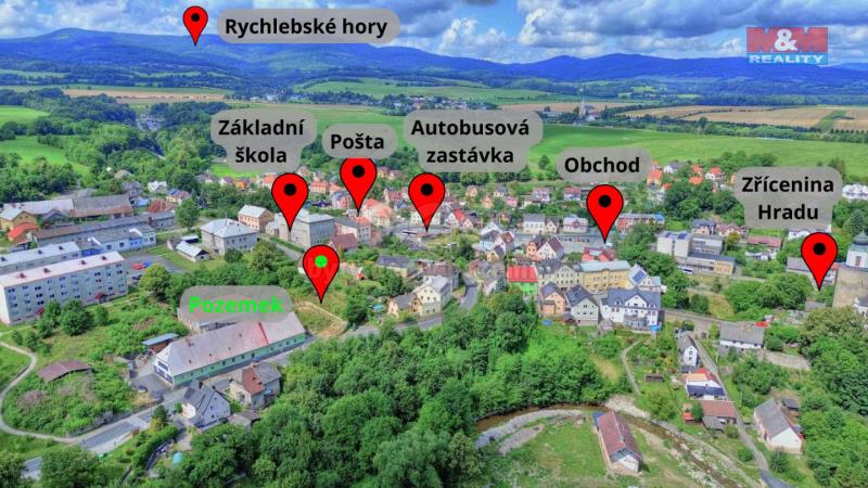 Nabízíme Vám ke koupi pozemek o celkové výměře 515 m2 určený územním plánem k výstavbě rodinného domu, který se nachází na okraji města Žulová. Pozemek se skládá ze dvou parcel. První parcela o výměře 190 m2 je vedena jako zbořeniště na katastru nemovitostí a dříve tu stála nemovitost. Druhá parcela o výměře 325 m2 je vedená jako zahrada. Pozemek se nachází v klidné části města u silnice a je ve svahu. Pozemek je vhodný na výstavbu rodinného domu, či umístění montovaného domu. Či pozemek využívat k rekreaci. Město Žulová nabízí dobrou občanskou vybavenost v pěším dosahu. Místo je také vhodné, jako výchozí bod k výletům z důvodu, že nedaleko jsou Jeseníky, Dolní Morava, či Přečerpávací elektrárna Dlouhé Stráně. Doporučujeme prohlídku. Více informací u makléře. S případným financováním nemovitosti, Vám rádi pomůžeme.