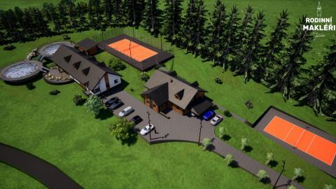 Máte dostatek kapitálu a chuť a invenci založit na Šumpersku atrakci, která nemá široko daleko obdoby? Váš záměr můžete realizovat na souboru pozemků o celkové výměře 12 146 m2 na okraji katastrálního území Šumperk v klidné části Nové Domky. K dispozici je již schválený projekt na výstavbu dvoupodlažní budovy s ubytováním a zázemím pro víceúčelové hřiště, na vizualizacích je zobrazena varianta rozšířená o dva bazény s teplou slanou vodou spolu s objektem určeným pro umístění šaten a sociálního zázemí. Projektovou dokumentaci lze modifikovat - změny povoluje příslušný stavební úřad. Vzhledem k umístění pozemku v lokalitě sousedící s popravištěm z období čarodějnických procesů se nabízí i zajímavá alternativa - postavit celý obchodní koncept na těchto historických souvislostech. Na místě lze dle platné ÚPD vybudovat také tábořiště, kemp, rozhlednu, provozovat jezdectví včetně chovu koní atp. Celkově se jedná o mírně svažité parcely zahrnuté v ÚPD jako plochy rekreace. Přípojka elektřiny na pozemku, možnost napojení na veřejné rozvody vody a splaškové i dešťové kanalizace.