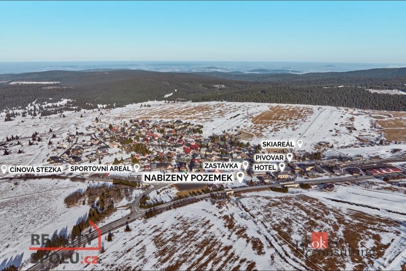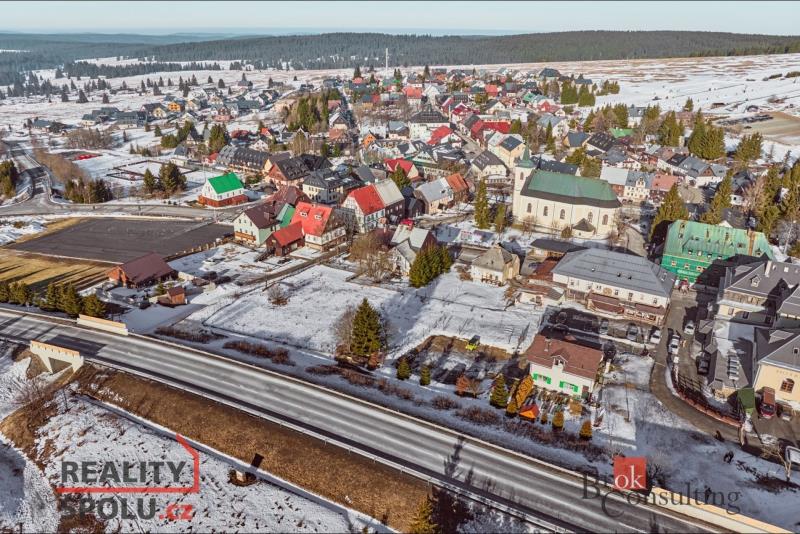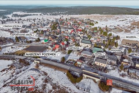 Na prodej nabízíme výjimečný soubor pozemků o celkové výměře 3 168 m2 v prestižní krušnohorské destinaci Boží Dar, přímo při vjezdu do obce a v bezprostřední blízkosti Garni hotelu St. Anna. Lokalita se nachází zhruba 30 metrů od sjezdovky – s přímou návazností na zimní i letní turistické aktivity. Pozemek tvoří 7 parcel a aktuálně na něm stojí dvě nevyužívané stavby: rodinný dům a vedlejší objekt bez č.p. Územní plán zde umožňuje umístění staveb pro drobnou výrobu a služby všeho druhu, alternativně také stavby pro sport, nákupní centra a zábavní střediska. Maximální míra zastavění činí 80 % s povolenými max. 2 podlažími. Celé území spadá do městské památkové zóny Boží Dar – případný nový záměr tak bude podléhat příslušným regulačním a památkovým požadavkům. Díky poloze v srdci Krušných hor, návaznosti na sjezdové i běžkařské tratě a krátké docházkové vzdálenosti do centra obce představuje nabídka ideální základ pro prémiový komerční nebo sportovní projekt. Hlavní přednosti • Špičková poloha: u vjezdu do Božího Daru, vedle hotelu St. Anna, cca 30 m ke sjezdovce • Velkorysá výměra 3 168 m2 (7 parcel) a vysoká míra zastavitelnosti • Flexibilní funkční využití dle ÚP: služby, sport, retail, zábava, drobná výroba Poznámka • Projekt bude nutné projednat s orgány památkové péče a v souladu s územním plánem obce. • Technické detaily (inženýrské sítě, napojení na komunikaci, případné ochranné pásma) sdělíme na vyžádání.