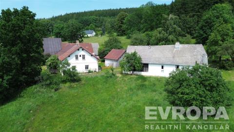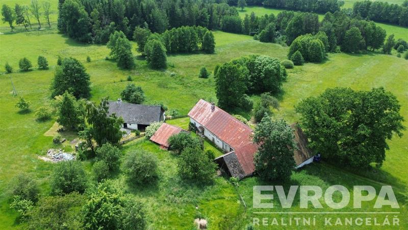 Představujeme vám jedinečnou příležitost zakoupit nemovitost nacházející se v malebné lokalitě nedaleko městyse Čachrov, v okrese Klatovy. Tato oáza klidu je ideálním místem pro rodinné bydlení, které spojuje pohodu venkovského života s bezprostřední blízkostí přírody. Dle územního plánu je plocha stavebních pozemků celkem 2.399m2 na které navazují různé druhy pozemků počínaje ornou půdou přes trvalý travní porost, lesy a zahrady o rozloze 78.360m2. Jedná se o prodej dvou chalup s přilehlou zemědělskou stavbou a stodolou. Hlavní užitný prostor nalezneme v jedné částečně zrekonstruované chalupě, která je k plnohodnotnému užívání. Ostatní stavení jsou vhodné spíše k rekonstrukci. Roubenka je o užitné ploše cca 100 m², dispozičně řešena jako 4+1. Do chalupy je zavedena elektřina, voda z vlastní studny, odpady řešeny pomocí jímky a vytápění zajišťují kamna na tuhá paliva napojeny na bývalou pec. Obytný prostor je možné rozšířit o podkroví. Celý dům je částečně zařízen a v dobrém stavu, což umožňuje okamžité bydlení. Druhá chalupa je vhodná k rekonstrukci. Z inženýrských sítí je do domu zavedena pouze elektřina. Nemovitosti se nacházejí na jihozápadním svahu. K dispozici jsou dvě studny na vlastním pozemku. Příjezdová cesta je obecní, nezpevněná. V případě umístění trvalého bydliště bude obec muset vybudovat zpevněnou komunikaci. Pokud chcete načerpat klid a pohodu tohoto neobyčejného místa, pokud hledáte útočiště, kde budete mít prostor pro své rodinné žití a pro své projekty, neměli byste si odpustit příležitost prohlédnout si tuto výjimečnou nemovitost. Doporučuji prohlídku.