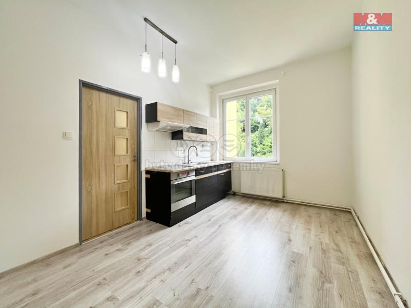 Nabízíme pronájem bytu 1+1 o výměře 41 m2 situovaného ve 2 NP bytového domu Děčín - Dolní Oldřichov, ul. Teplická. Byt je po rekonstrukci - plastová okna, novější kuchyňská linka se sporákem, indukční deskou a digestoř, nová koupelna s vanou, toaletou a otopným žebříkem, nové vnitřní i vchodové dveře. Na podlahách plovoucí podlaha a dlažba. Led osvětlení. O vytápění se stará plynový kotel, ohřev vody je řešen bojlerem. K dispozici komora na patře, sdílená komora v mezipatře, půda a zahrada za domem. Nájem 7.000,-Kč měsíčně + poplatek za úklid 300,-Kč + záloha na vodu (individuálně) a elektřinu a plyn (dodavateli), vratná kauce 21.000,-Kč, provize RK 7.000,-Kč. Byt ihned volný. Veškerá občanská vybavenost v dosahu. Bude vyžadována bezdlužnost.