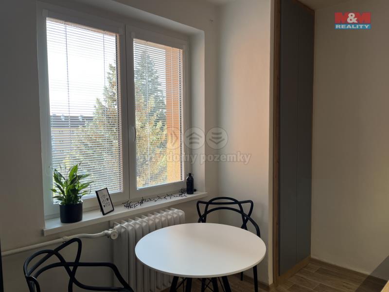 Pronájem nově zrekonstruovaného bytu 1+1, podlahová plocha bytu 33 m², ulice Benešovo náměstí. Byt se nachází v 3. nadzemním podlaží zděného domu bez výtahu. Dispozice: chodba, samostatné WC, v chodbě vestavěná skříň, pokoj, kuchyňským kout s jídelnou, koupelna s vanou. Byt vybaven moderní kuchyňskou linkou se spotřebiči (pračka, mikrovlnná trouba, indukční deska, lednice), špajz v kuchyni. Vestavěné skříně na chodbě. Nájem uveden včetně energií. Volné od září 2025.