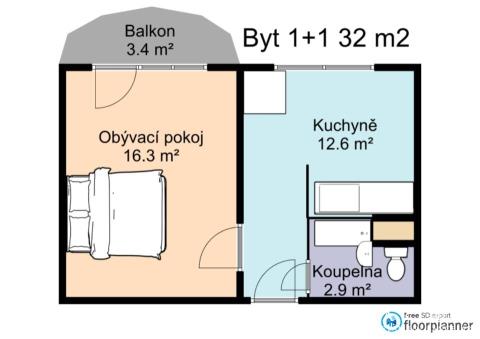 K pronájmu, Byt 2+kk, 38 m2 Brno, ulice Kosmonautů