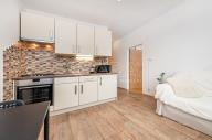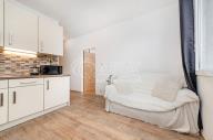Byt je vybaven ledničkou (umístěna ve spodní skříňce linky) a pračkou. K uložení věcí slouží velká vestavná šatní skříň přes celou stěnu v ložnici. V bytě je možné ponechat starší gauč, ostatní volně stojící nábytek na fotkách v bytě nezůstane.
