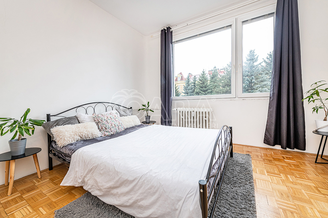 Byt je po rekonstrukci. Je vybaven kuchyňskou linkou s plynovou varnou deskou a troubou. Jádro je zděné, toaleta je spojená s koupelnou, která disponuje vanou a místem pro pračku. Vytápění a ohřev vody je centrální z vlastní plynové kotelny. Na podlahách je dlažba, vinil a v ložnici dřevěné parkety ve velmi dobrém stavu. Byt je vymalován a pečlivě uklizen.