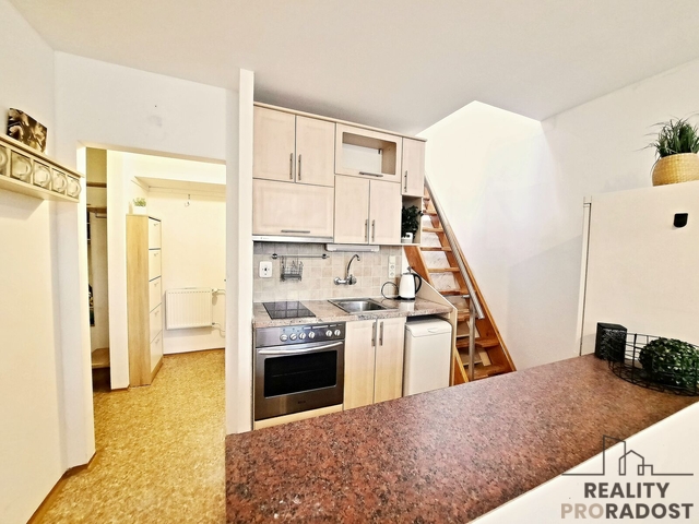 Nabízíme k pronájmu útulný mezonetový byt 1+1 v Brně Komíně, ul. Součkova, CP 40 m2, ve 2.p a 3.p. rekonstruovaného panelového domu. Byt je částečně zařízený (KL, varná deska, el. trouba, digestoř, pračka, dvoulůžková postel a vestavěné police, v předsíni věšák na šaty, botník a police). V 1.p. bytu je umístěna vstupní chodba, obytná kuchyně, koupelna s WC a komora, ve 2.p. bytu je umístěna ložnice. K nastěhováni od 1. 5. 2026. Vhodné pro 1-2 osoby. Možnost připojení internetu a kabelové televize přes Vodafone. Uvedené nájemné je bez zálohy na inkas ve výši 3.200,- Kč měsíčně. Majitelům se platí vratná kauce ve výši jednoho měsíčního nájmu vč. inkasa, provize 13.500,- Kč.
