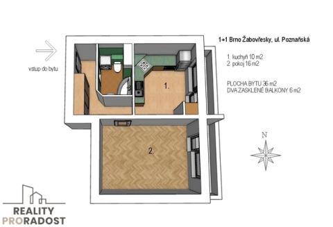 K pronájmu, Byt 2+1, 42 m2 Brno, Jamborova