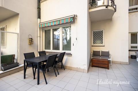 K dlouhodobému podnájmu nabízíme pěkný byt o dispozici 1+1 ve vyhledávané lokalitě Praha - Holešovice s výbornou dopravní dostupností. Byt o celkové výměře 48 m² se nachází ve zvýšeném přízemí cihlového domu. Velkou předností bytu je terasa o velikosti 21 m², kde je pro Vás připraveno i posezení. Kuchyně disponuje velkou pracovní linkou a je vybavena spotřebiči, jako jsou trouba, varná deska, digestoř, myčka a lednice. Z kuchyně je vstup na terasu. Pokoj je nevybaven, můžete si jej tedy zařídit podle svých představ. Koupelna je vybavena rohovou vanou, toaletou a umyvadlem, k dispozici je i pračka. V chodbě je prakticky řešena šatní skříň, která je velmi prostorná. Pro další uskladnění je u kuchyně komora. V docházkové vzdálenosti do 4 minut je stanice metra C - Vltavská. Tramvajové zastávky Kamenická a Strossmayerovo náměstí jsou do 2 minut chůze. V okolí se nachází veškerá občanská vybavenost – např. potraviny Žabka, pošta. Dále zde najdete restaurace, kavárny a dětské hřiště. Byt je k dispozici od 01.03.2026