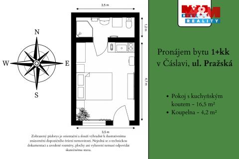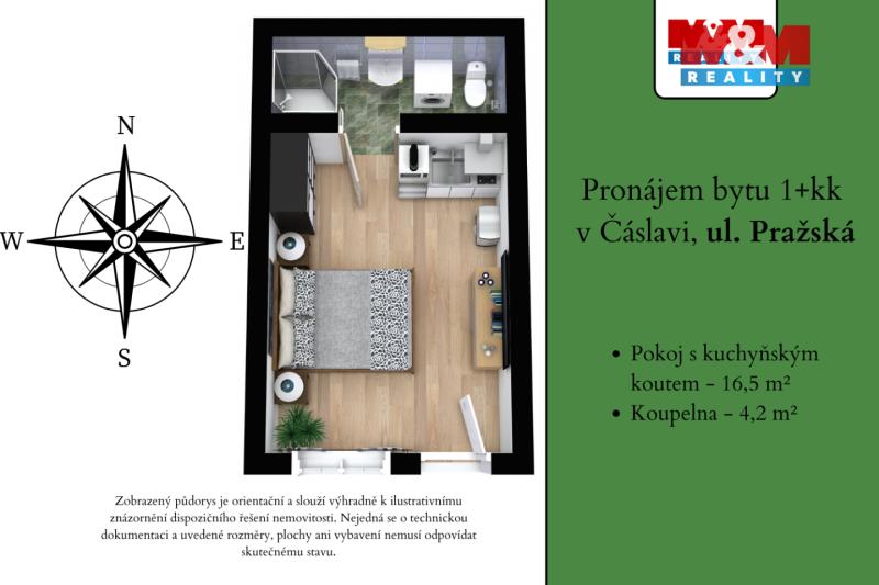K pronájmu, Byt 1+kk, Čáslav, Pražská