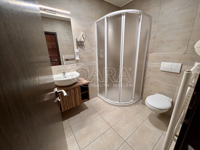 Jedná se o kompletně zrekonstruovanou jednotku, která se nachází ve 2.NP cihlového domu s výtahem. Sestává z chodby, která je vybavena předsíňovou skříní s botníkem a šatní skříní. Z chodby se dostaneme do obytné části, která je zařízena menší kuchyňskou linkou s lednicí s mrazákem, pečící mikrovlnnou troubou s grilem, digestoří a dvouplotýnkovou varnou deskou. Dále je jednotka vybavena jídelním stolem s židlemi, komodami, rozkládací postelí s matracemi a menší televizí. Koupelna je přístupná z chodby a je vybavena sprchovým koutem, umyvadlem, skříňkou pod umyvadlem a WC.