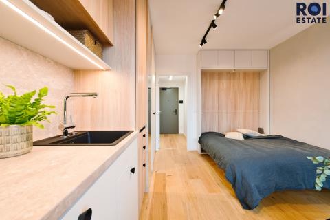 Hledáte stylové, krásné a úplně nové bydlení v samém srdci Brna? Pak Vás zaujme tato nabídka designového a funkčního bytu. Interiérová návrhářka navrhla tento byt na míru. A je kompletně vybavený, zcela nový, světlý byt 1+kk v prémiovém rezidenčním komplexu Pekárenský dvůr – jen pár minut od centra. Tento komplex nabízí jedinečné a velmi bezpečné bydlení, do domu se dostanete přes recepci. Posedět u dobré kávy můžete ve skvělém prostředí kavárny. Parkování je v garážích, které jsou umístěné pod domem, vaše auto je tak chráněno a v bezpečí. A k bytu máte možnost si toto místo pronajmout také. Byt je umístěný ve Františkově domě , samotná plocha bytu je 23 m², nachází se v 5. patře domu s několika výtahy. Tento ateliér je ihned k nastěhování a můžete bydlet hned v novém, voňavém a čistém. Vstup přes chodbu s úložnou předsíňovou stěnou. Koupelna je se sprchovým koutem. Pěkné neutrální barvy a velmi kvalitní obklady. Pod umyvadlem skříňka na uložení kosmetiky. Při vstupu do pokoje vás zaujme velké okno, tedy dostatek světla a opravdu mnoho velmi dobře navržených úložných míst. Kuchyňská linka na míru s vestavěnými spotřebiči. Pracovní kout v stejném designu. A co říkáte na postel? V tomto ateliéru najdete opravdu vše, stačí přijít s kufrem. K bytu náleží ještě sklep. A je možné pronajmout garážové parkovací místo v budově. cena 2.500 Kč/ měsíčně. Lokalita Pekárenského dvora je výjimečná – v areálu najdete fitness centrum, wellnes, kavárnu s pekárnou a další služby, které zpříjemní každodenní život. Ať už chcete sportovat, relaxovat nebo si dát ranní kávu – vše máte doslova pod nosem. Nastěhování dle dohody Pokud vás tahle nabídka zaujala, neváhejte mě kontaktovat, a ráda vám byt osobně představím. Jaké služby nabízíme PRO PODNÁJEMNÍKY? S Garantovaný Najem automaticky získáváte: Plně pojištěný byt s non stop asistenční linkou, kdy pojištění se vztahuje navíc i na běžnou odpovědnost za škody způsobené v běžném životě, prodlouženou záruku spotřebičů o 2 roky a nebo servisní techniky v případě pojistné události (práce zámečníka, opravy havárií). Zákaznický servis pro Vás od 7:00 – 18:00 pro řešení vašich dotazů a požadavků. T: +420 770 182 182 Technickou podporu (pro případ, že budete chtít pomoci s technickými záležitostmi na bytě. Zařídíme přepis energií. Možnost výměny bytu za větší/menší/jinde z portfolia bytů GarantovanyNajem nebo ROI Estate (Brno, Praha a další města). Podnajmout si byt nebylo nikdy snazší a efektivnější.