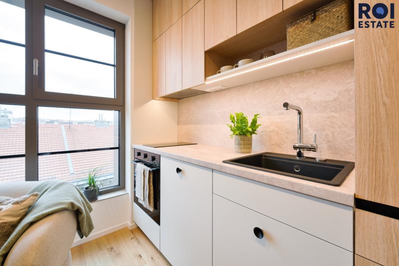 Hledáte stylové, krásné a úplně nové bydlení v samém srdci Brna? Pak Vás zaujme tato nabídka designového a funkčního bytu. Interiérová návrhářka navrhla tento byt na míru. A je kompletně vybavený, zcela nový, světlý byt 1+kk v prémiovém rezidenčním komplexu Pekárenský dvůr – jen pár minut od centra. Tento komplex nabízí jedinečné a velmi bezpečné bydlení, do domu se dostanete přes recepci. Posedět u dobré kávy můžete ve skvělém prostředí kavárny. Parkování je v garážích, které jsou umístěné pod domem, vaše auto je tak chráněno a v bezpečí. A k bytu máte možnost si toto místo pronajmout také. Byt je umístěný ve Františkově domě , samotná plocha bytu je 23 m², nachází se v 5. patře domu s několika výtahy. Tento ateliér je ihned k nastěhování a můžete bydlet hned v novém, voňavém a čistém. Vstup přes chodbu s úložnou předsíňovou stěnou. Koupelna je se sprchovým koutem. Pěkné neutrální barvy a velmi kvalitní obklady. Pod umyvadlem skříňka na uložení kosmetiky. Při vstupu do pokoje vás zaujme velké okno, tedy dostatek světla a opravdu mnoho velmi dobře navržených úložných míst. Kuchyňská linka na míru s vestavěnými spotřebiči. Pracovní kout v stejném designu. A co říkáte na postel? V tomto ateliéru najdete opravdu vše, stačí přijít s kufrem. K bytu náleží ještě sklep a parkovací místo v garáži. Lokalita Pekárenského dvora je výjimečná – v areálu najdete fitness centrum, wellnes, kavárnu s pekárnou a další služby, které zpříjemní každodenní život. Ať už chcete sportovat, relaxovat nebo si dát ranní kávu – vše máte doslova pod nosem. Nastěhování dle dohody Pokud vás tahle nabídka zaujala, neváhejte mě kontaktovat, a ráda vám byt osobně představím. Jaké služby nabízíme PRO PODNÁJEMNÍKY? S Garantovaný Najem automaticky získáváte: Plně pojištěný byt s non stop asistenční linkou, kdy pojištění se vztahuje navíc i na běžnou odpovědnost za škody způsobené v běžném životě, prodlouženou záruku spotřebičů o 2 roky a nebo servisní techniky v případě pojistné události (práce zámečníka, opravy havárií). Zákaznický servis pro Vás od 7:00 – 18:00 pro řešení vašich dotazů a požadavků. T: +420 770 182 182 Technickou podporu (pro případ, že budete chtít pomoci s technickými záležitostmi na bytě. Zařídíme přepis energií. Možnost výměny bytu za větší/menší/jinde z portfolia bytů GarantovanyNajem nebo ROI Estate (Brno, Praha a další města). Podnajmout si byt nebylo nikdy snazší a efektivnější.