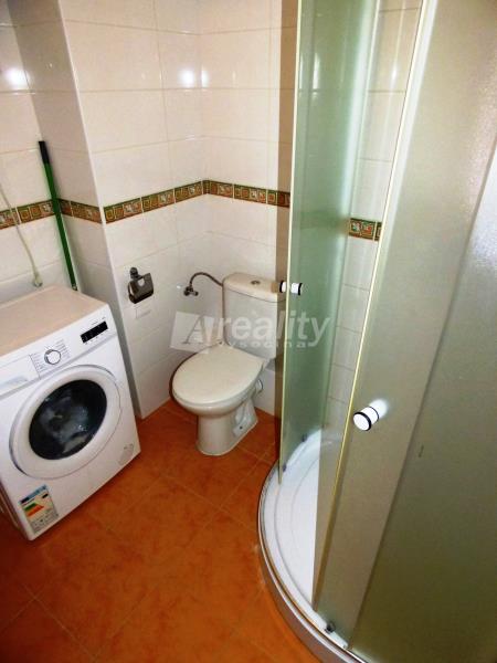 Dispozice: z předsíně se vchází napravo do koupelny s WC, umyvadlem, pračkou a sprchovým koutem a rovně do obytného pokoje s kuchyňským koutem.