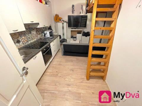 Volný od 1.9 Nabízíme k pronájmu byt o dispozici 1+kk a o podlahové ploše 25 m2. Byt se nachází v 1.nadzemním podlaží cihlového domu. Pronajímá se nevybavený, zařízení na fotografiích je bývalého nájemníka. Stylový byt se skladá z předsíně, kuchyně spojené s obývacím pokojem a galerií na spaní, koupelny se sprchový koutem a toalety. K bytu náleží sklep. Dům se nachází v centru města. Parkovat je možné u domu. Byt je nabízen nevybavený. V případě, že budete mít zájem o pronájem tohoto bytu, navštivte naše stránky a volejte makléři. K ceně nájmu bude připočtena kauce a provize RK.
