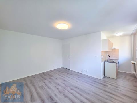 Nabízíme k dlouhodobému pronájmu kompletně zrekonstruovaný byt 1+kk o velikosti 26,5 m², umístěný ve 3. patře revitalizovaného panelového domu s výtahem. Dispozice bytu: vstupní chodba s pračkou, koupelna se sprchovým koutem a toaletou, obývací pokoj s kuchyňským koutem vybaveným troubou, dvouplotýnkovým elektrickým vařičem a digestoří. K bytu lze využívat společnou lodžii o patro výše, ideální např. k sušení prádla. Okna jsou plastová, vytápění je ústřední. Energetická náročnost budovy: C. Nájemné a poplatky: měsíční nájem: 12 000 Kč, zálohy na služby: 2 500 Kč (jedna osoba) / 3 000 Kč (dvě osoby), elektřina se převádí na nájemce, vratná kauce: 18 000 Kč. Další podmínky: byt je volný ihned k nastěhování, majitelé preferují nájemce bez domácích mazlíčků, podmínkou je doložení bezdlužnosti a trestní bezúhonnosti. Byt se nachází v klidné lokalitě v ulici Vodárenská, Kladno, s veškerou občanskou vybaveností v dosahu.