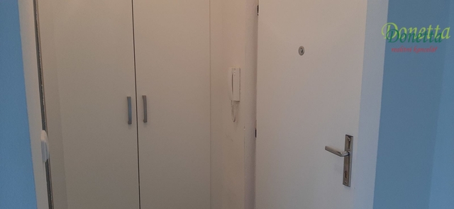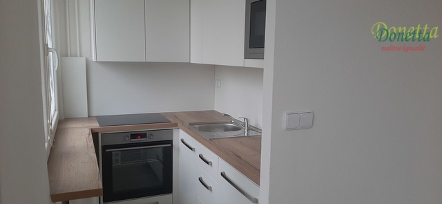 Dispozice bytu: vstupní chodba s úložnou skříní, koupelna se sprchou, umyvadlem, místem pro pračku a toaletou, obytný pokoj, ze kterého je vstup na balkón a oddělený kuchyňský kout se zcela novou kuchyňskou linkou se spotřebiči (lednice, mikrovlnná trouba, dřez, sporák, elektrická trouba).